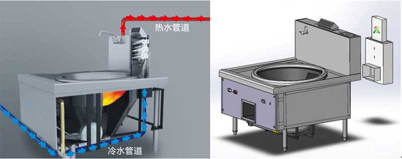 寬信自主研發(fā)的廚房煙氣余熱回收直接安裝于傳統(tǒng)鍋爐灶的后煙道,利用鍋爐排煙溫度在500-600度左右所攜帶的熱能,制產(chǎn)熱水送至儲(chǔ)水箱備用,水箱儲(chǔ)備的熱水可供廚房自用,也可供給其他場(chǎng)合使用。寬信廚房煙氣換熱器有效降低排煙溫度和減少火災(zāi)隱患,隨爐灶灶火一同自動(dòng)啟動(dòng)運(yùn)行,不需要人工操作,爐灶熱效率提高30%以上。