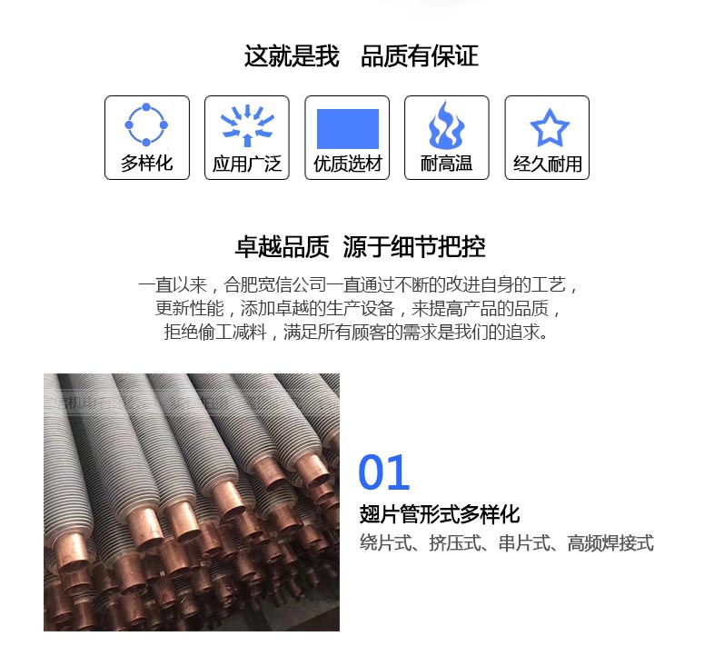 寬信公司是生產(chǎn)翅片管換熱器的生產(chǎn)廠家,嚴(yán)格按照J(rèn)B/T11249-2012國家標(biāo)準(zhǔn)執(zhí)行,具有傳熱效率高,阻力小,結(jié)構(gòu)緊湊,運行穩(wěn)定,操作簡單直觀等優(yōu)點,是換熱效率高的節(jié)能型換熱產(chǎn)品。