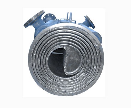 2、在殼體上的接管采用切向結(jié)構(gòu),局部阻力小,由于螺旋通道的曲率是均勻的,液體在設(shè)備內(nèi)流動(dòng)沒(méi)有大的轉(zhuǎn)向,總的阻力小,因而可提高設(shè)計(jì)流速使之具備較高的傳熱能力。