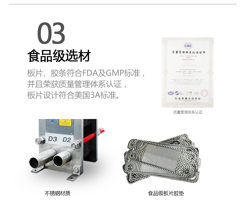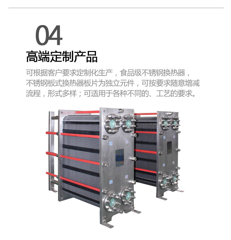 寬信不銹鋼板式換熱器(衛(wèi)生級)結(jié)構(gòu)形式可分為可拆式板式換熱器和全焊板式換熱器。板片、夾板及接管均為食品級不銹鋼,膠墊為掛扣式免粘接結(jié)構(gòu),板片、膠條符合FDA 及GMP國際標(biāo)準(zhǔn)。