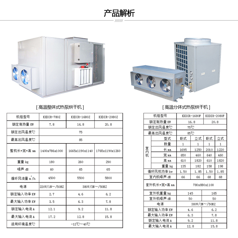寬信熱泵烘干機組分為整體式和分體式,采用空氣能原理集成系統(tǒng),嵌入式設計,配置高溫壓縮機,高溫冷媒,微電腦PLC全自動控制,7寸大屏觸摸屏,24小時全自動運行,對溫度和濕度精確控制,閉環(huán)除濕,達到快速升溫,快速除濕的目的,最大程度的提高了烘干效率。
